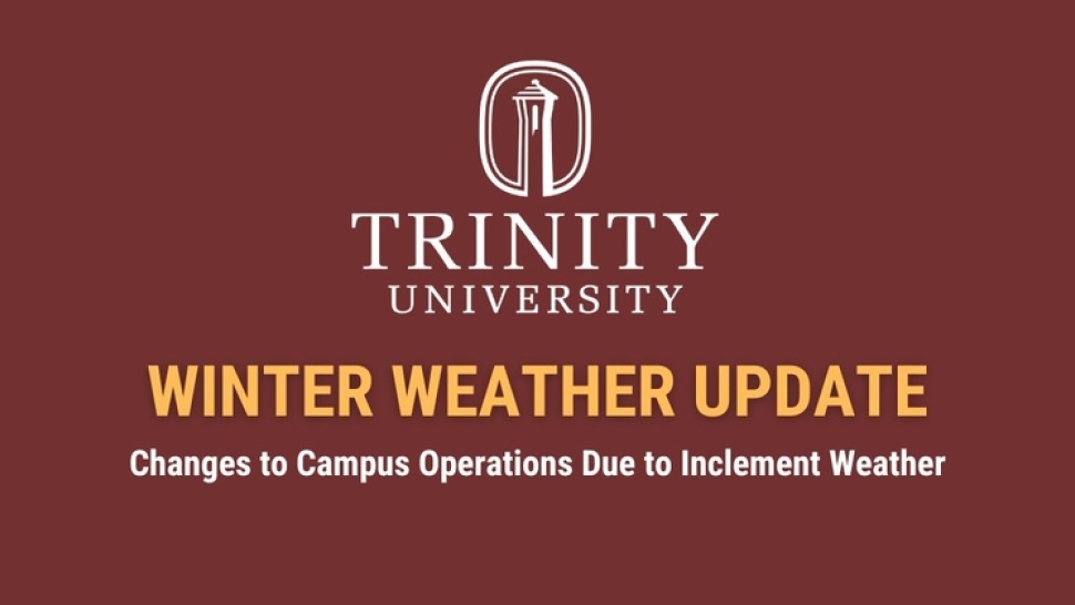 The National Weather Service has issued a winter storm warning for the San Antonio area from 6 pm Monday through 6 pm Tuesday, which includes the potential for a wintry mix of snow/ice during the warning period. Based on the current forecast for wintry conditions, the University will cancel all non-essential operations, classes, programs, and activities for Tuesday, January 21.