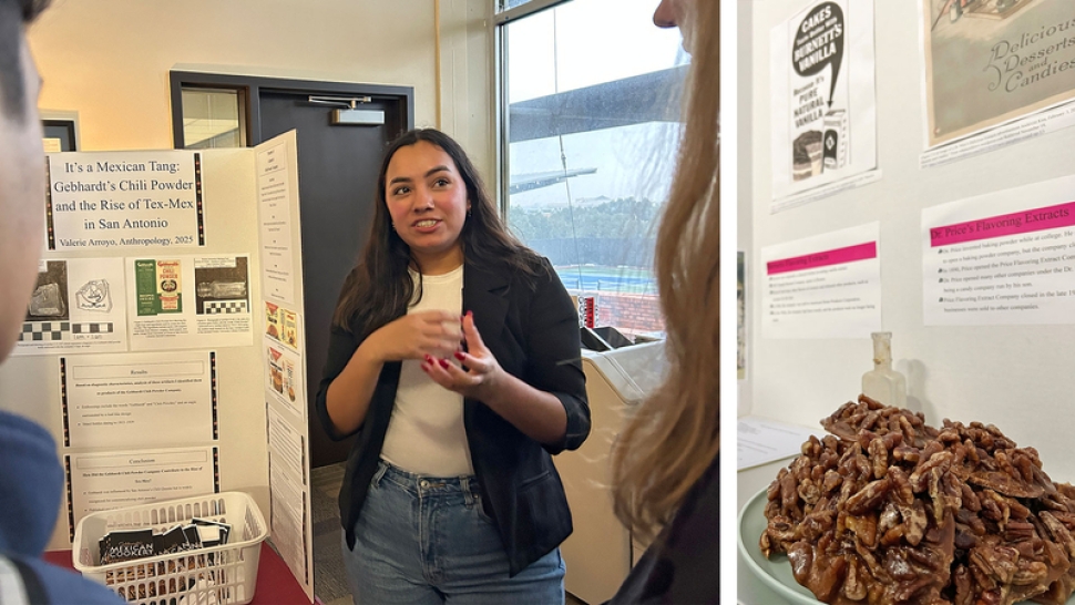 One man's trash is another student's treasure: Tigers in "Archaeology of Trinity University" presented research and an exhibit about historic artifacts found on Trinity's campus. From Pearl beer bottles to pearlized oyster shells, students shared connections between artifacts and their contexts — even pecan pralines made from a (modern) bottle of Burnett’s vanilla.