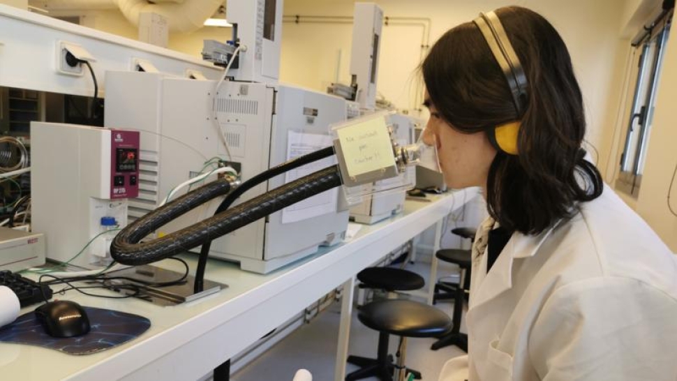 In the header photo, Liu uses a fragrance evaluation machine called Olfactory GC-MS, which separates olfactory molecules in a sample.