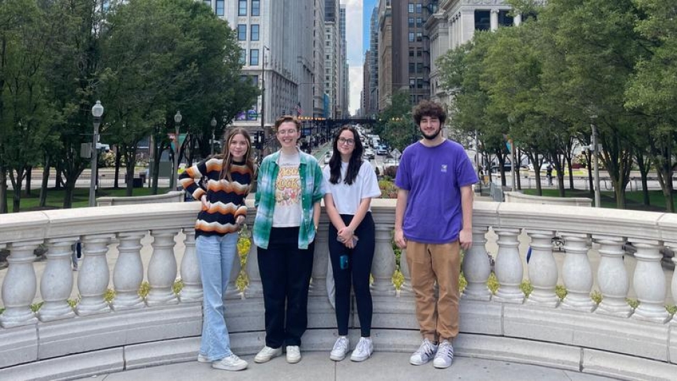 Jasmine Evenstad '26 (left) poses for a photo with fellow Trinity debate students.
