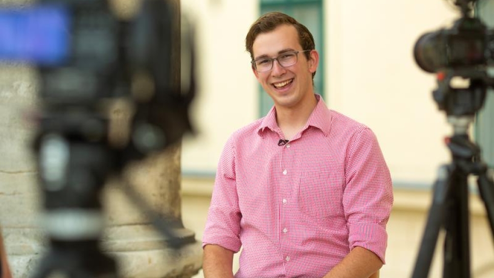 Opportunities like a two-week study abroad tour to China with the Trinity Chamber Singers, where he performed with Chinese students and learned about their music and culture. (“Insanely fun and meaningful.”) Or two weeks singing in Austrian cathedrals and other venues, again with the Chamber Singers. (“I had never done choir before college, so the opportunity to perform at such a high level and to travel internationally with the whole group was amazing.”) Or conducting theatre research in an Italian village outside Rome through the Mellon Research Program with Holly Gabelmann and human communication and theatre professor Kyle Gillette. (“I was so fortunate to get to explore theatre on an international level with two people I adore.”) Or directing a small musical called Tick, Tick... Boom! (“An eye opening experience that wouldn’t have been possible without the support of my professors and our stage manager/lighting designer Mindy Tran. It was seminal to my continued desire to become a theatre teacher in the public school system.”)