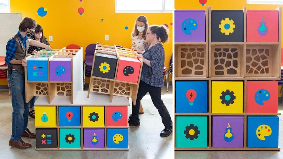 The project, a modular series of machine-crafted, interlocking boxes, was constructed as part of an interdisciplinary class called “Academic Making for the Built Environment” and was meant to inspire children to think creatively about the concept of STEAM (Science, Technology, Engineering, Art, and Math). But examine the Trinity group’s creative process, and you’ll see every member of the class got to build something equally as impressive: more dynamic versions of themselves.