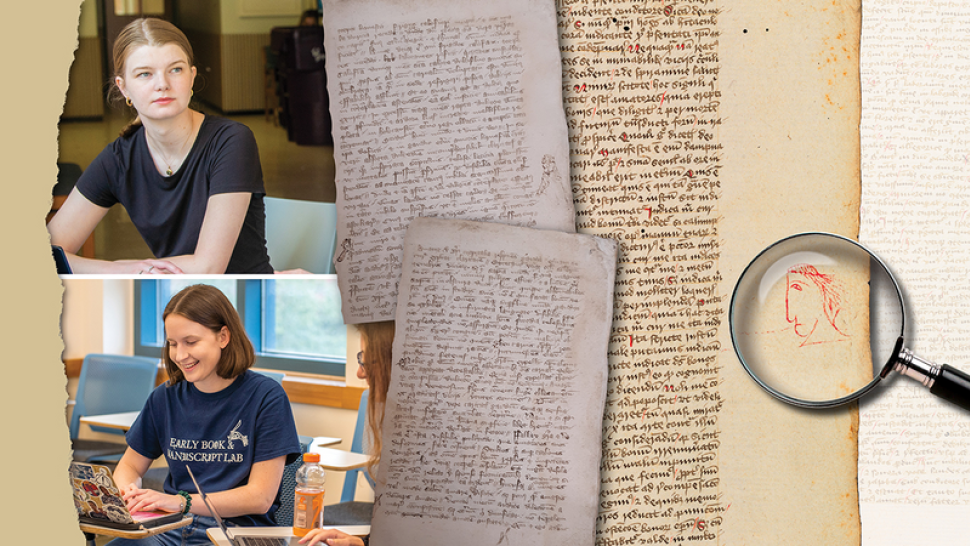 When my First-Year Experience professor, Andrew Kraebel, Ph.D., told me about his Early Book and Manuscript Lab, my heart skipped a beat. I hadn’t imagined that my interests in English and Latin would land me in a hands-on humanities lab deciphering medieval manuscripts, digging into the handwritten books in which all texts were preserved before the invention of the printing press—and as a first-year, no less. Two years later, I’m getting ready to develop the work that I’ve been doing in the Early Book and Manuscript Lab for my senior thesis.