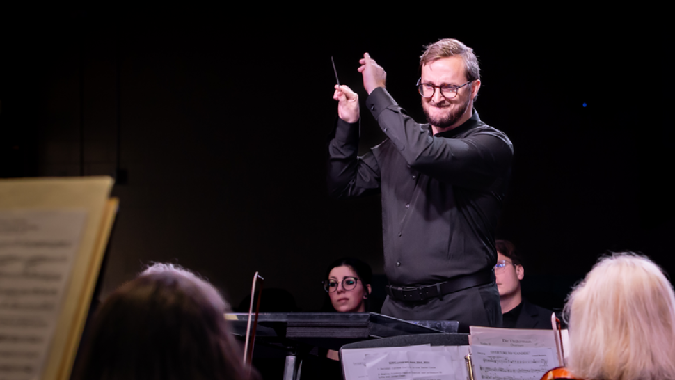 To me, this competition is a strong affirmation of the work the musicians of the Trinity Symphony Orchestra (TSO) and I embark on every school year: We learn from each other and grow together, and it's safe to say I could not have reached this point without the invaluable experience I have gained over the first eight years here at Trinity. My goal has always been to build and maintain a culture of musical excellence in the TSO while also holding firm to the inclusive nature of music in the liberal arts and its power to shape our graduates' creativity, vision, and empathy, regardless of their field of work. I hope this competition can spotlight the rich tradition of music-making at Trinity.