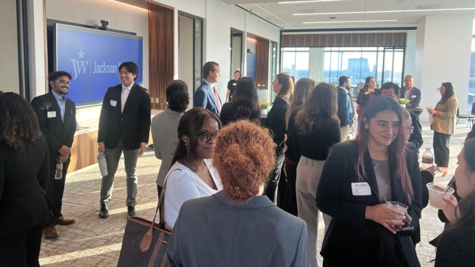 Following the panel, we mingled with the alumni and more than 15 other JW attorneys specializing in diverse areas of law, including energy, litigation, intellectual property, and corporate and securities. Some were partners with more than 25 years of experience, and others were first-year associates.