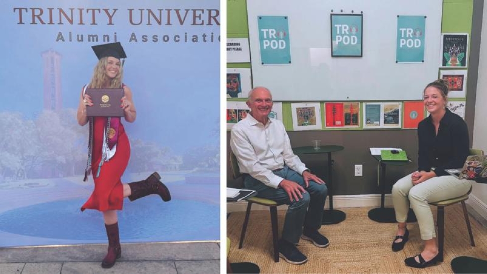 Shortly after, Brennan took up the mic as the producer, editor, and host of Tripod, the Trinity University Press podcast, which captivates and enlightens listeners about their favorite press publications and authors and the greater San Antonio community.