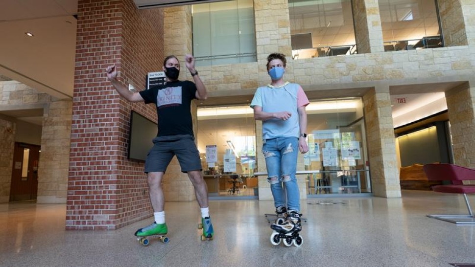 Faculty like Lewis have played a key role in many of Lauerman’s best experiences at Trinity. Lewis wasn’t just a face on Lauerman’s first visit—he quickly became Lauerman’s favorite professor. “I took as many computer science classes with him as he could, because I just learn so much from his classes, and he has such an awesome way of teaching,” Lauerman says. “And when I see him in the hallways, you can just go up and talk about computer science stuff. And afterwards, we just go roller skate around campus and hang out.”