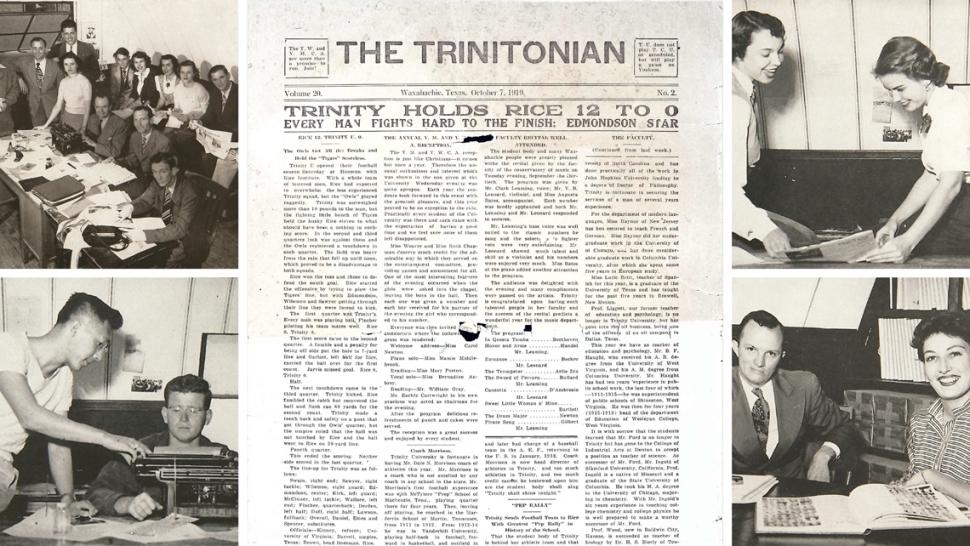 The beginning of the 20th century saw the dawning of the Golden Age of newspapers, with more than 20,000 in regular publication. In the absence of internet, television or even commercial radio, the printed word was the lifeblood for even the tiniest berg or hamlet. Ever in the vanguard, Trinity students reimagined the Trinitonian in 1915 from a monthly literary publication to a weekly newspaper. Each Tuesday, staffers kept Tigers informed of campus, local and world events and issues—with only brief lapses during WWI and the Great Depression, according to Trinity historian and author Douglas Brackenridge.