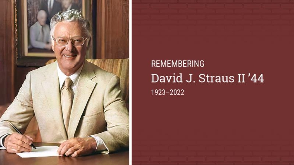 Trinity University Trustee Emeritus David J. Straus II ’44 died on May 28. He was 98. Straus served on Trinity University’s Board of Trustees for more than 30 years, from 1975-2009, and was awarded Trinity’s Distinguished Alumnus Award in 1995.