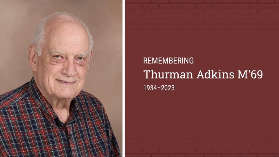 Thurman Adkins M’69, J.D., former assistant vice president for Student Affairs, died on Aug. 5, 2023. He was 88. Adkins served Trinity University from 1965-99.