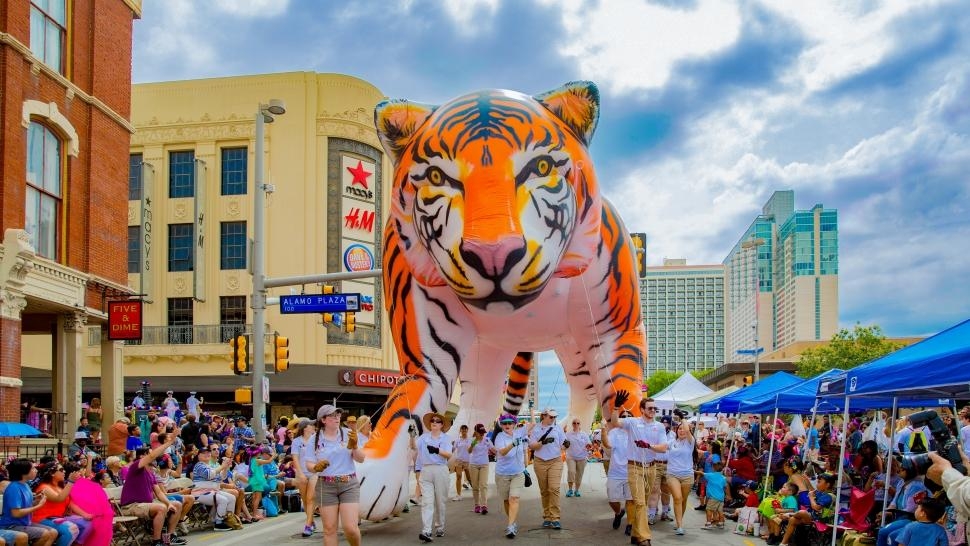 Join us as we return to the Battle of Flowers Parade! Trinity University proudly re-enters Fiesta with a rich history dating back to 1946 when our floats graced the Battle of Flowers and River parades. Our Trinity team includes faculty, staff, students, and alumni, all coming together to celebrate and embark on the 2.6-mile trek through downtown San Antonio. And, YES, our iconic tiger-shaped helium balloon will be there with us!